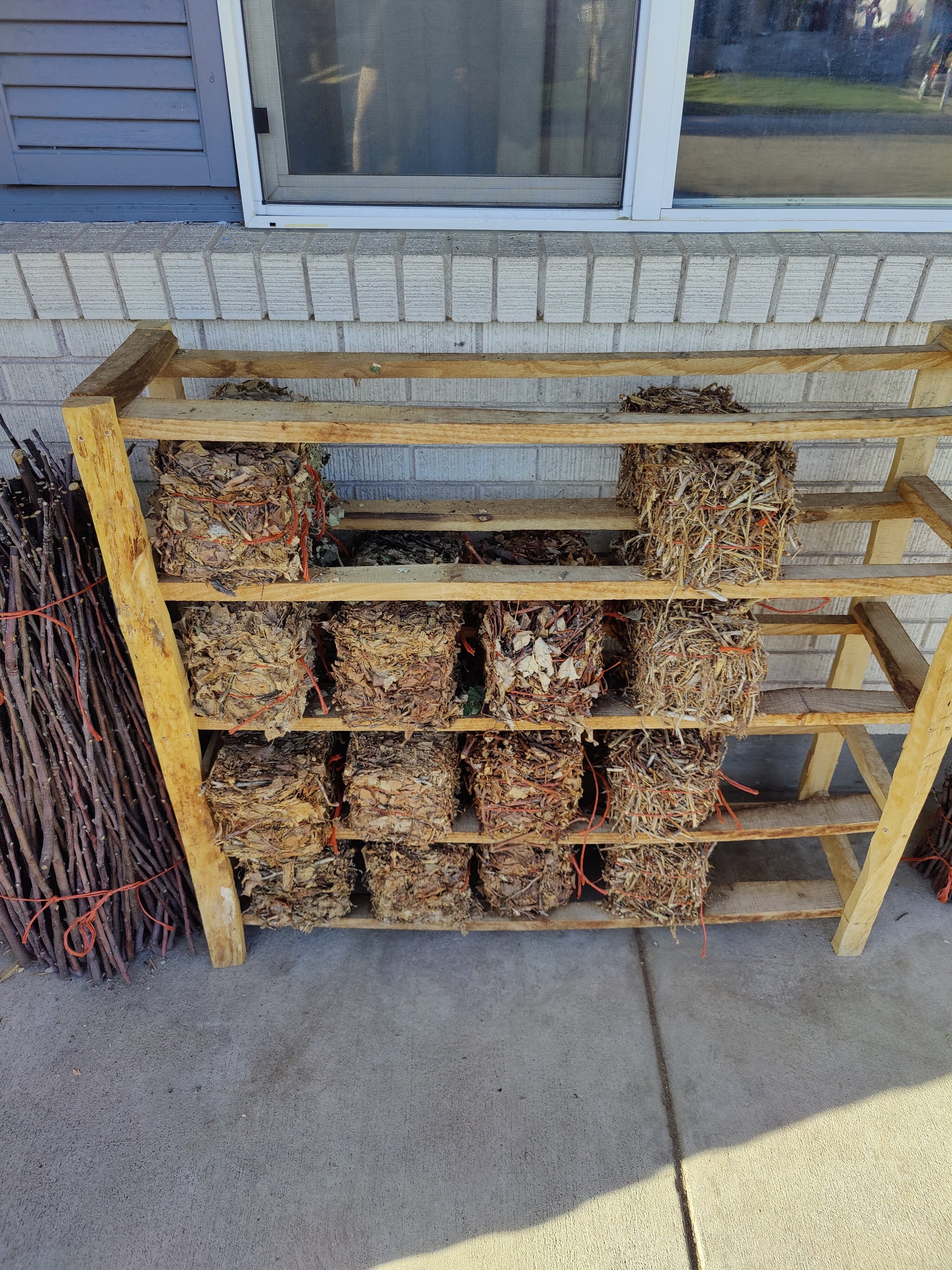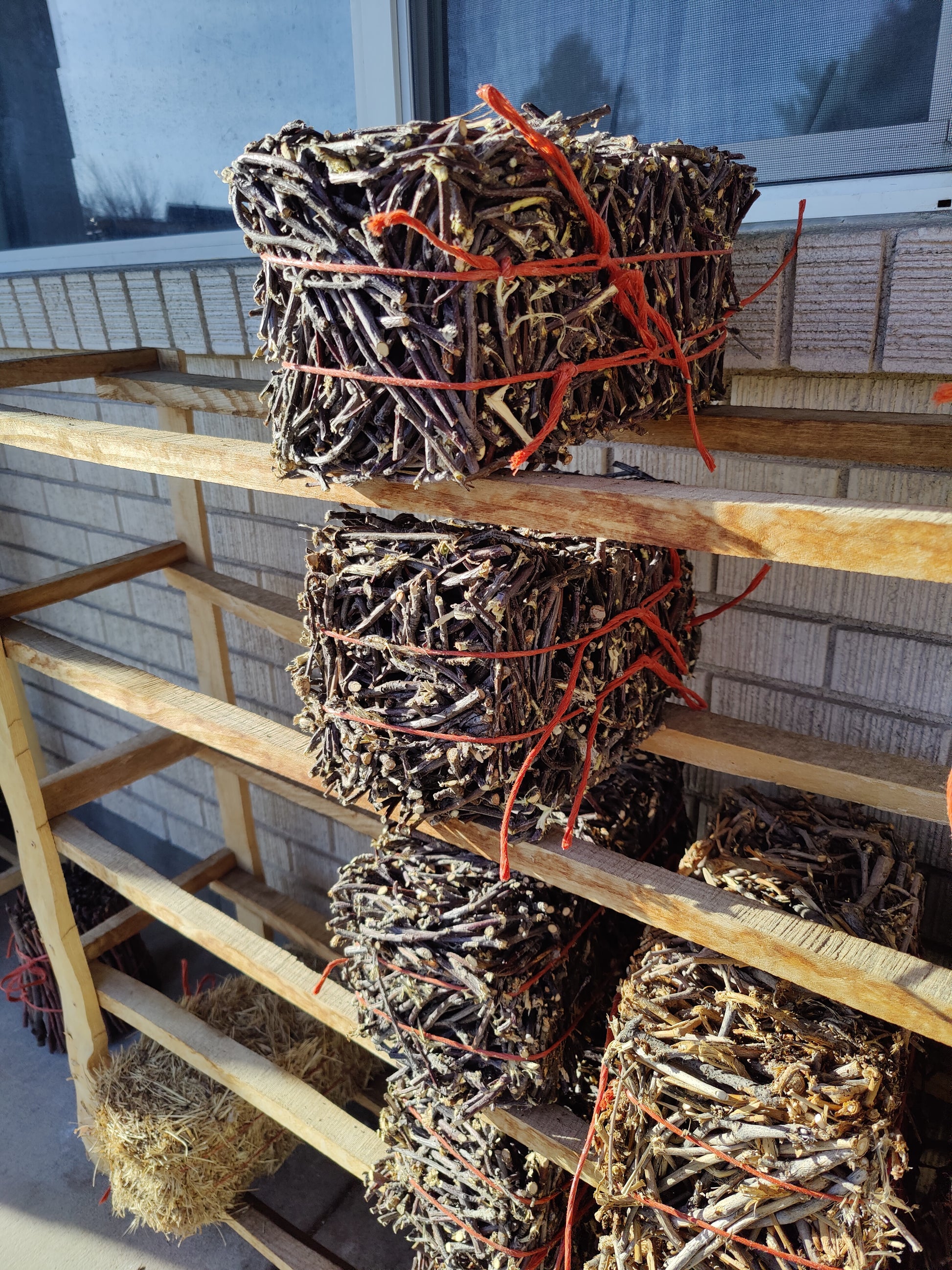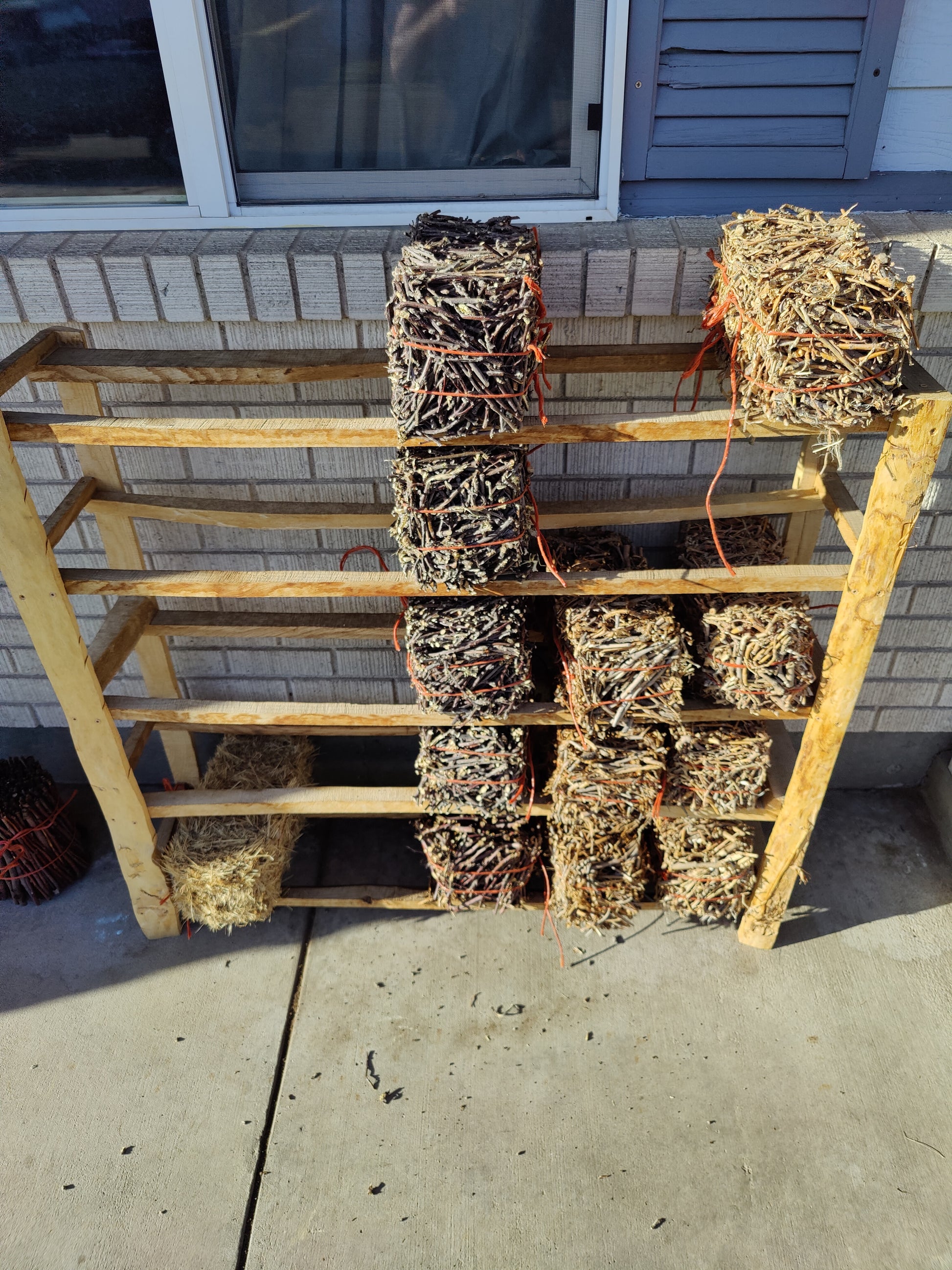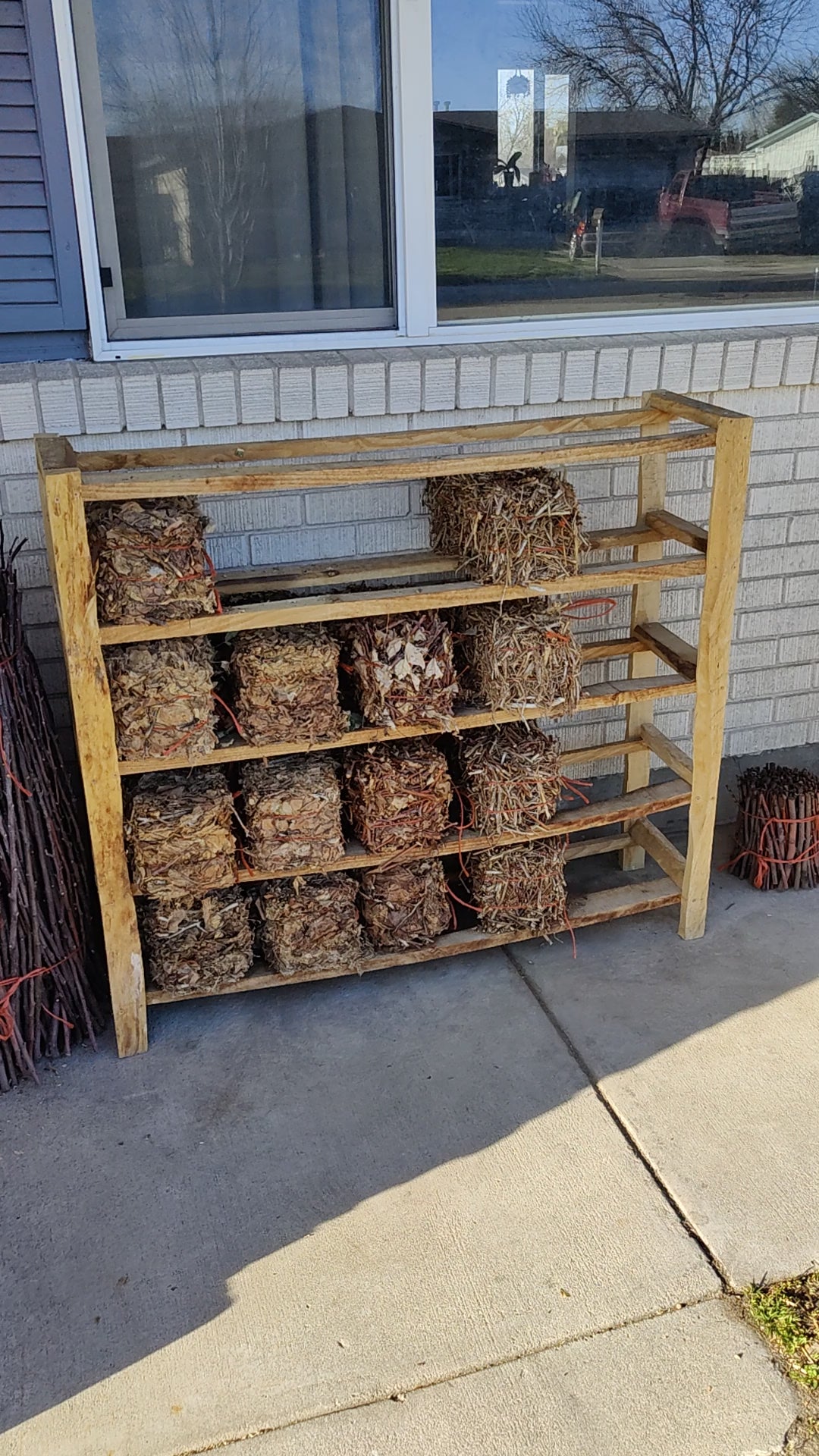 These are essentially bailed trees. We use the twigs, shoots, leaves, and flowers; varying according to the season they were harvested. These parts are "patience takingly" dismantled from the brush of tree trimmings, and whole tree harvests, from sustainable management of the urban forest. They are baled green then sun dried.