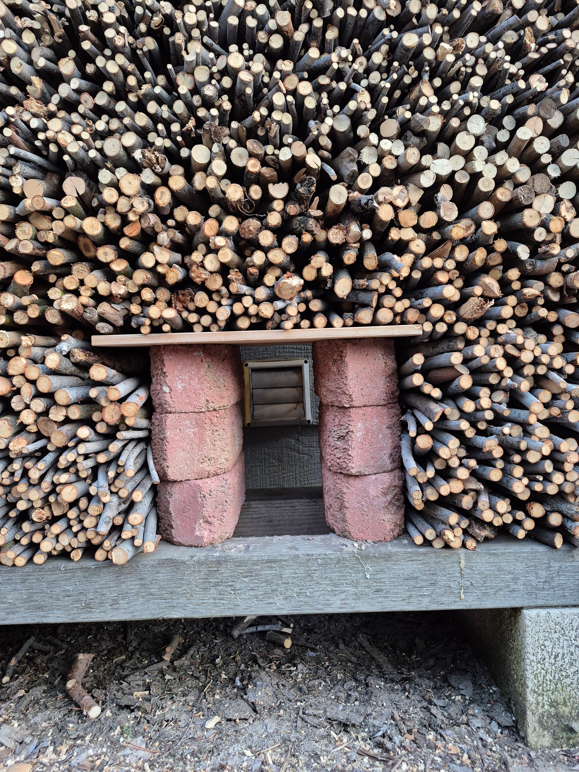 This kindling is a mix of hard and soft wood from urban tree services. The pieces are all no more than 16 inches long and are generally 1 inch in diameter and smaller. This rack houses 1/3 cord exactly even considering the gap left for the dryer vent (42.66 cubic feet). This is sold in 1/3 cords only.