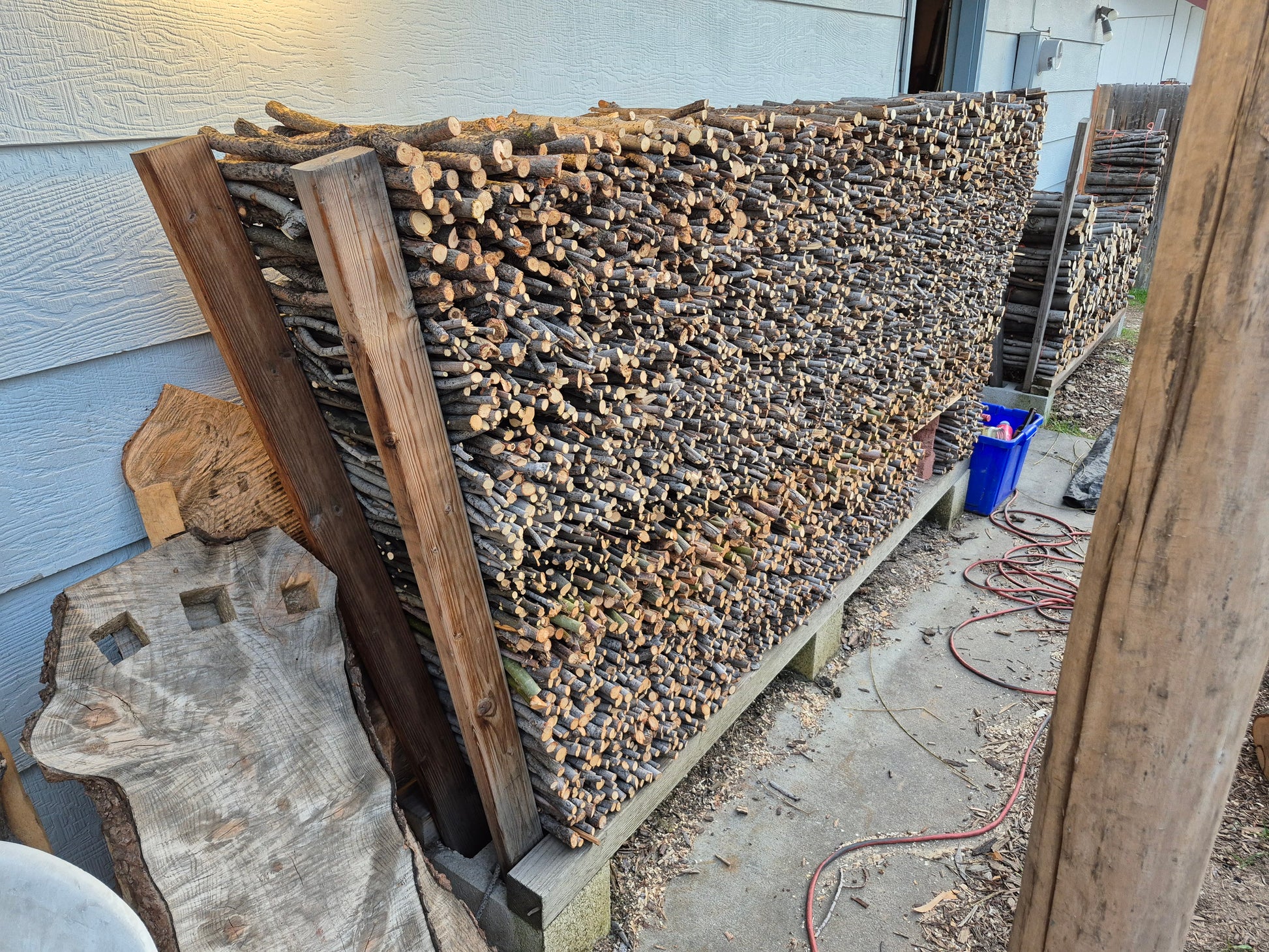 This is a mix of green and dead wood but given it size and how hot Idaho summers are it will be completely dry and ready for use by mid July 2025.